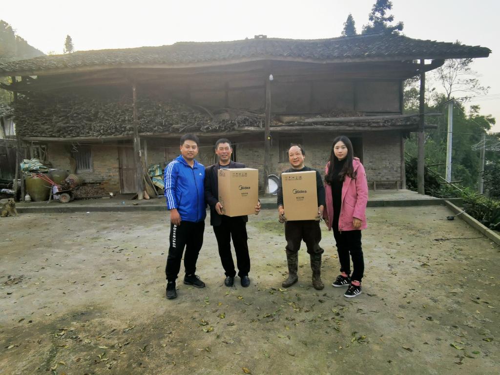 在与贫困党员交流中,李雅婧老师与廖述兵老师询问了党员们的健康情况以及生活当中存在的困难,从生活条件、家庭状况等方面了解了党员的情况,并且代表公司为村民党员们送去了爱心物资。